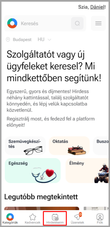 2. Navigálj a „Hirdetéseim” menüpontra