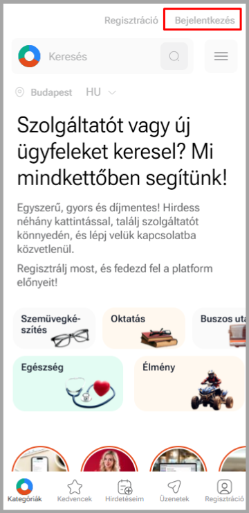 Először is, látogass el a ProVendo főoldalára, jelentkezz be a profilodba.