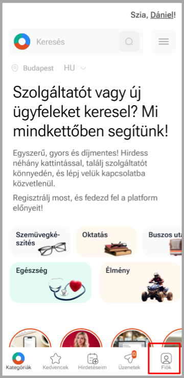 Miután beléptél a főoldalra, válaszd a Fiók menüpontot a jobb alsó sarokban.