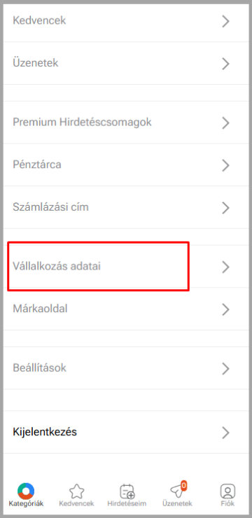 3. Keresd meg a Vállalkozás adatai” menüpontot