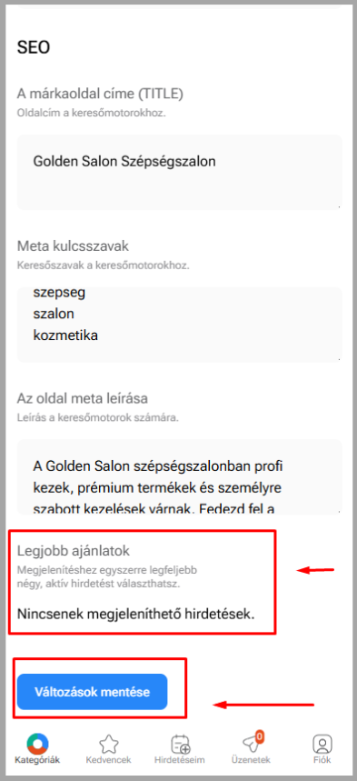 Ha több hirdetésed van, a márkaoldalon kiemelhetsz maximum 4 legjobb ajánlatot.