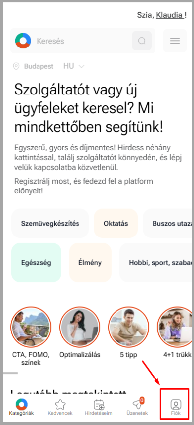 Bejelentkezés után kattints a „Fiók” menüpontra.