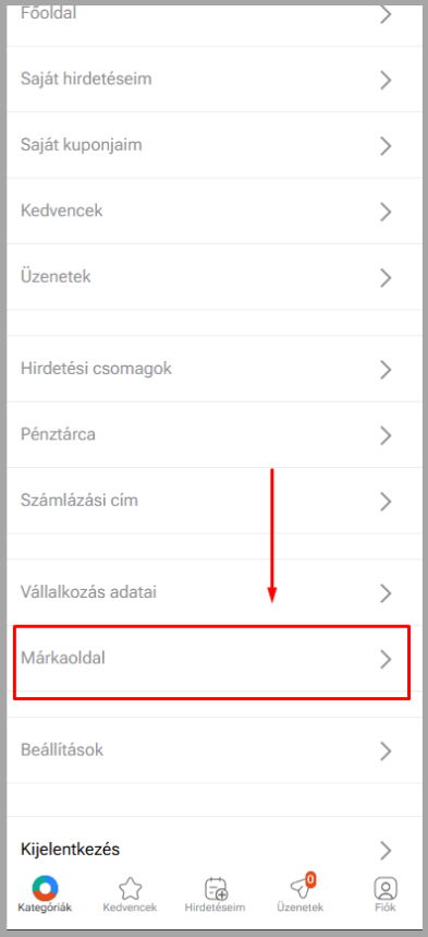 Görgess lejjebb, amíg meg nem találod a „Márkaoldal” menüpontot, majd kattints rá.