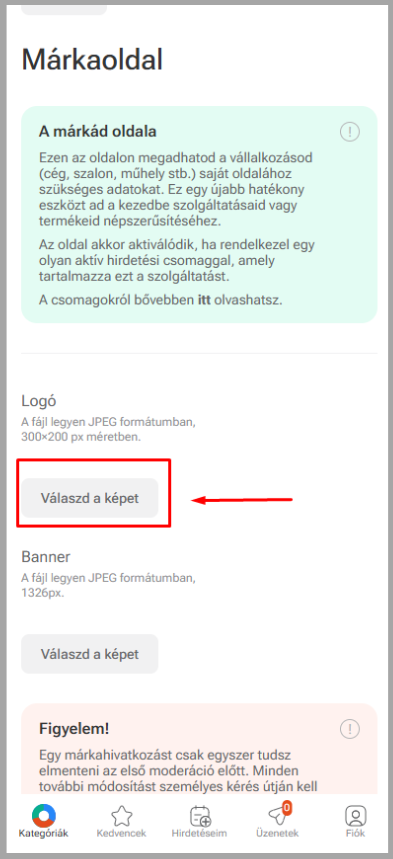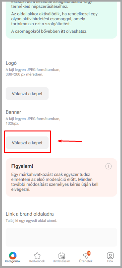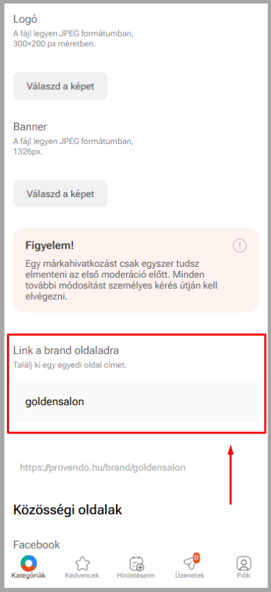 Egy márkahivatkozást csak egyszer tudsz elmenteni az első moderáció előtt. Minden további módosítást személyes kérés útján kell elvégezni.