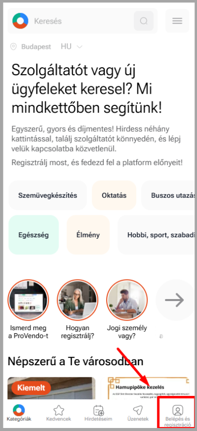 Nyisd meg a főoldalt, és kattints a „Belépés és Regisztráció” gombra.