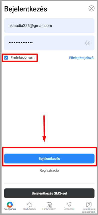 Pipáld be az „Emlékezz rám” opciót, majd kattints a „Bejelentkezés” gombra.