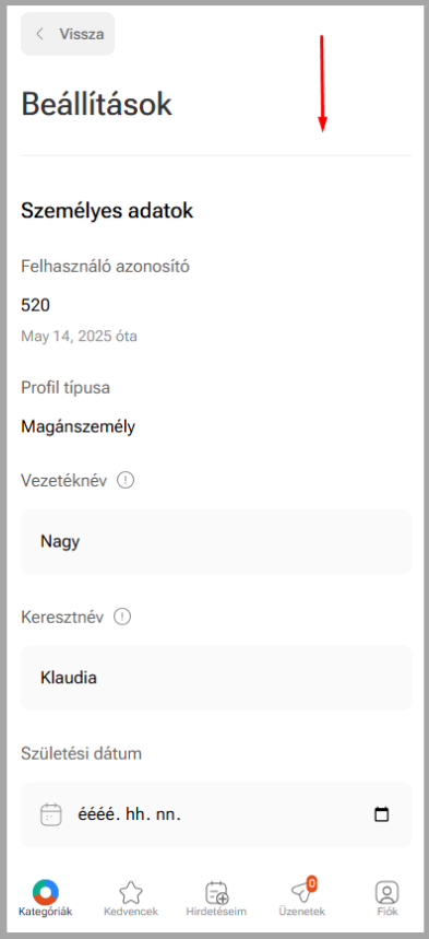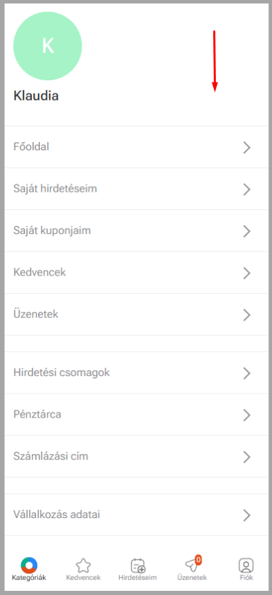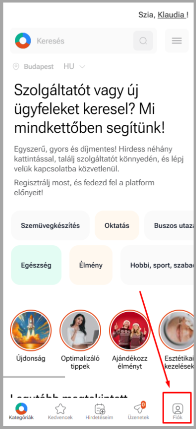 Bejelentkezés után kattints a „Fiók” menüpontra.