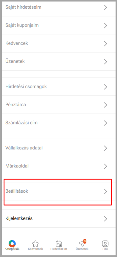 Görgess lejjebb, egészen a menü aljára, és válaszd ki a „Beállítások” lehetőséget.