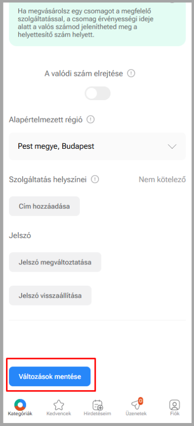 Görgess le a lap aljára, és kattints a „Változtatások mentése” gombra.